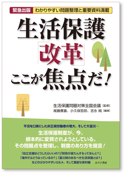 今、生活保護制度が、利用者の声と生活実態を無視して、根本的に変質されようとしている。その問題点を指摘し、真の生活保護制度改革のあり方を提起する。先進諸国の中で日本がいかに遅れているかも明らかに。分かりやすいQ&A、豊富な最新資料編も便利。特別章「東日本大震災と生活保護」も所載。 監修の生活保護問題対策全国会議は、生活保護利用者、ケースワーカー、弁護士、司法書士、研究者、社会保障関係の諸団体で構成し、憲法25条の「権利としての社会保障」の観点から、さまざまな提言や運動を行う全国組織。